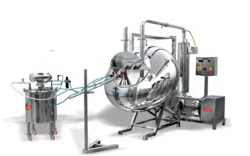 SAMS coating pan designed by keeping in mind needs of universal conventional coating requirement such as rotational speed, angle of inclination of pan, inside finish of pan, total volume, temperature of air and exhaust arrangement